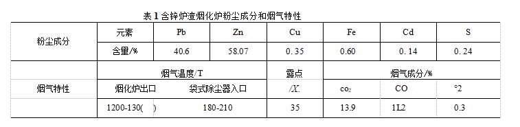 煙化爐粉塵成分和煙氣特性列于表煙氣先經(jīng)過余熱鍋爐以回收熱量并降低溫度然后進入長袋低壓脈沖袋式除塵器收塵.