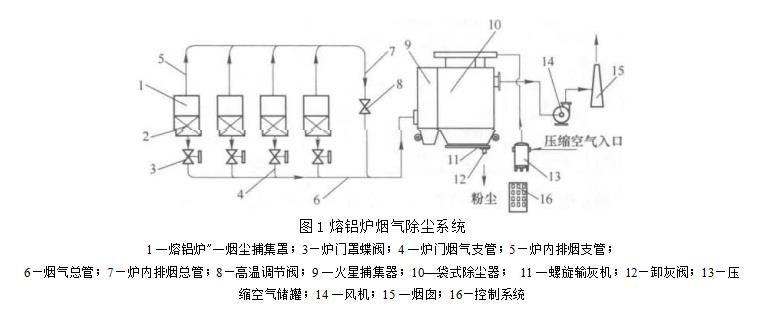 熔鋁爐除塵系統(tǒng)由煙塵捕集罩,輸氣管道及閥門,火星捕集器,袋式除塵器,風(fēng)機,自動控制系統(tǒng)等部件組成.